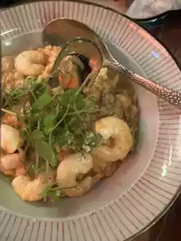The rice absorbs the essence of the seafood broth, soft and flavorful