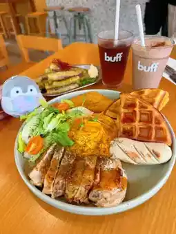 Bu Ku Buff is a boutique coffee shop that has recently left a deep impression on me❤️ As soon as you step inside, although the space is not large, the warm wooden tones and soft lighting naturally slow your pace, inviting you to a little journey for your taste buds and soul😆