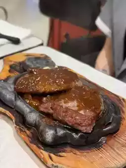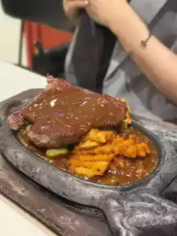 The beef fillet is cooked to medium rare, thickly sliced with a slight pink center, tender and flavorful. Served on a bed of wavy fries, the thick-cut fries offer a satisfying texture. Paired with a hot sizzling plate and drizzled with a rich, mildly spicy black pepper sauce, the taste is irresistible!