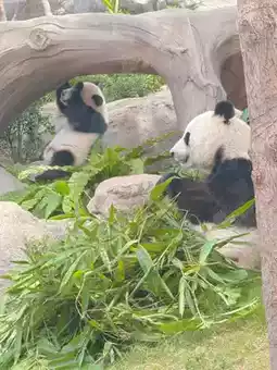 Haven't been to Ocean Park for a long time. A friend had free tickets, so of course, I went to visit the pandas 🐼 first. The first stop was to see the elder sister and younger brother pandas. Both 🐼 were very active, climbing trees, eating bamboo, and playing around. They were really adorable and funny, with lots of interaction between the two 😍.