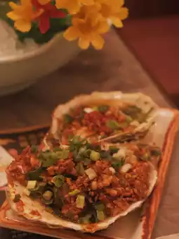 𖦹 Sichuan Style Jumbo Grilled Oysters: Lots of fried garlic!