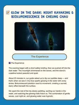 Night kayaking with bioluminescence in Cheung Chau is one of Hong Kong’s most magical hidden experiences. It’s not about speed or adrenaline — it’s about slowing down and watching nature’s light show right under your boat. 🌌💙🛶