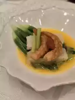 Starting off was the "Trio of Marinated Delights," featuring cuttlefish, century egg, and sea cucumber. First up was the Chaozhou-style marinated cuttlefish with Sichuan peppercorns. Its tender and fresh texture carried the aroma of Chaozhou-style marinade with a subtle hint of numbing spice, making it a refreshing appetizer.