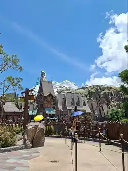 Wandering Oaken's Sliding Sleighs is another ride at Hong Kong Disneyland in the World of Frozen zone that we really, really love. Although the ride is short, it’s exciting and thrilling, with lots of screams 😆. It recreates the atmosphere of snow and ice mountains. You get to ride a sleigh designed like the one in Frozen, sliding along a winding track at just the right speed. Along the way, you can enjoy beautiful views of Arendelle and hear the lovely songs from the movie, making the ride even more enjoyable. You can see the Frozen castle in the distance. When we went, there were a lot of people in line, so it’s best to go early in the morning. But if you buy a special ticket, you don’t have to wait long at all.