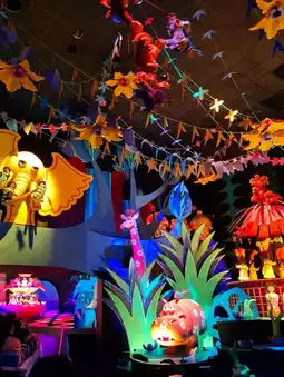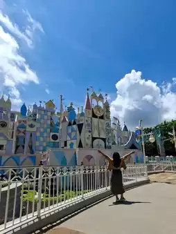 💫 Sailing through a dream world filled with cute dolls from various countries dressed in traditional costumes singing “It’s a Small World” in different languages. The interior is decorated with bright colors and sparkling lights, creating a very dazzling atmosphere. It’s cool and comfortable inside with no thrills, but it helps cool you down and gives you a break from the excitement and scares of other rides. It takes about 10 minutes, and there’s a photo spot inside, so don’t forget to smile for the camera 😄
