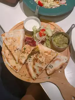 Beef Cheek Mexican Cheese Quesadilla🌮 Included in the set💰 Crispy outside and soft inside😗 The beef cheek meat is tender🥩 with plenty of semi-melted stretchy cheese🫕 Dipped in sour cream and avocado sauce☁️🥑 for a richer taste🤤