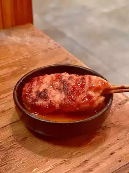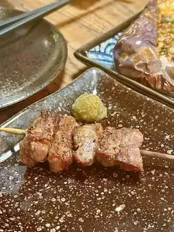 Miso Matsusaka Pork (2 skewers) 🐖 Single order $30 💰 Matsusaka pork is crispy and delicate 😗 The miso sauce tastes slightly sweet 😛