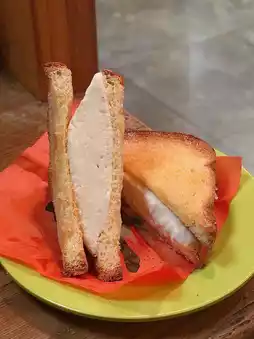 Hong Kong style honey toast with ice cream 🍞 Single order $48 💰 The toast is crispy on the outside and soft on the inside 😝 The surface is spread with honey 🍯 and sprinkled with sugar ☺️ Served with cool ice cream 🍨