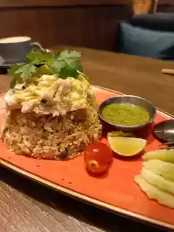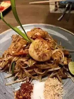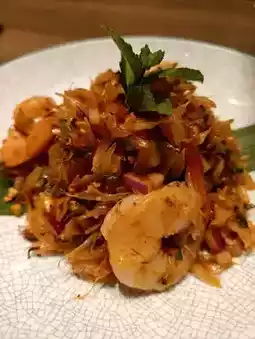 The crab meat is succulent and sweet, and the rice is crisp and distinct, offering a rich and flavorful texture. Thai-Style Prawn Fried Phnom Penh Vermicelli