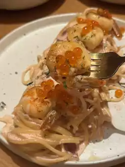 Mentaiko Cream Bacon Spinach Prawn Pasta