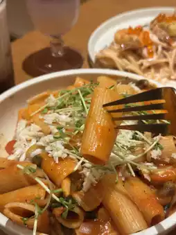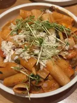 The vodka adds a hint of alcohol aroma to the pasta, while the sweet tomato and crab meat make the dish anything but monotonous.