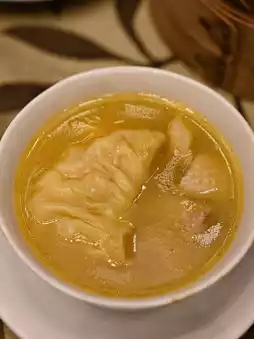 🌟 Our signature peppery chicken broth dumplings feature thin, thin wrappers filled with fresh shrimp and minced pork. The peppery aroma is so pronounced that you can sip the broth before savoring the filling!