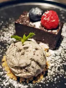 For dessert🍮, today's House Made Daily Special Dessert is Chocolate Brownie with Cookies & Cream Icecream🍨. Brownie is rich in chocolate 🍫, sticky with a moist taste, and is served with iced ❄️ Cookies & Cream ice cream, sweet but not greasy ✨, making this high-quality Western meal a perfect ending 🎉!