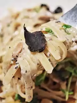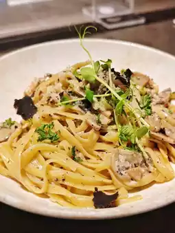 BLACK TRUFFLE MUSHROOM LINGUINE🍝 As soon as it is served, the aroma of truffle🍄 comes to your nostrils, which makes you want to eat✨. The pasta is bouncy, served with rich 🧀 cream sauce, onion 🧅, garlic and freshly sliced black truffle slices🤩, every bite is filled with the unique aroma of truffle, really satisfying😋!