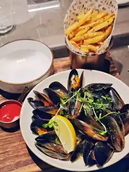 We ordered half a kilogram 🥂 mussels cooked in white wine, fresh mussels cooked with white wine and dill, fresh and sweet, full of meat✨. The best part is that it comes with truffle fries 🍟, the fries are fried to golden brown and crispy 🔥, the truffle flavor is very fragrant, whether it is ordered ketchup 🍅 or mussel sauce to eat together, it is so good 👍!