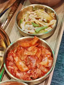 The appetizers include crispy Korean kimchi🥢 and fresh pickled ribbon skirt🤤, which is very appetizing✨.
