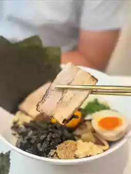 ➡️ Prick the Japanese egg yolk and stir thoroughly to enjoy the original flavor of the lo mein.