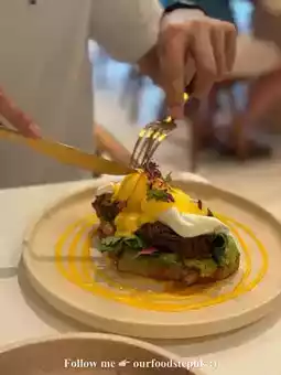 This is my first time trying a beef-themed Benedict. The generous portion of beef and two eggs is incredibly satisfying for those who work out! 😌