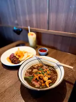 🔸Main: Wagyu boat noodles +$28 & steak omelette with fries $78