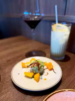 For drinks, try a glass of red wine 🍷. The tannins are relatively soft, and the acidity is moderate, making it an easy-drinking wine that pairs well with a variety of dishes. If you don't like alcohol, try a Virgin Colada 🍹. It's sweet and sour, and the aroma of pineapple juice is refreshing. Cheers!