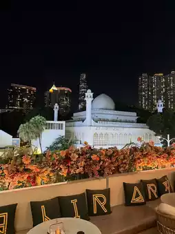 This upstairs bar and restaurant on Nathan Road boasts a green garden interior, while the alfresco seating boasts a resort-style feel. ⛱ There's a photo-op spot (you can capture the mosque across the street in your photo) that's truly stunning! ❤️ The restaurant serves a variety of Western dishes and drinks, all presented in exquisite presentations, perfect for photo ops! 📸