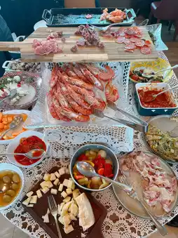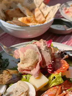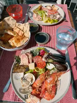 🥗A wide selection of Italian cold appetizers Includes a variety of Italian frozen meats, cheeses, and pickled vegetables. The housemade buffalo mozzarella has a smooth texture and a natural milky aroma. The sweet and juicy honeydew melon paired with the savory Parma ham is a classic Italian delicacy you can't miss. The Argentinian red shrimp and crab claws in the frozen seafood are savory, fresh, and juicy. The grilled squid in the cold salad with olive oil is incredibly bouncy and worth a try.
