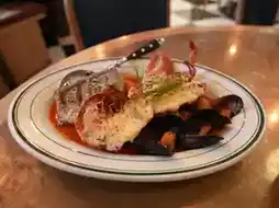 Lobster and Marseille Pot: Half a live lobster, blue mussels, braised king prawns, cod, and potatoes