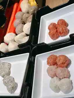 Over 60 toppings are available. For seafood, 🦐Sand clams, razor clams, and sea bass fillets are all fresh and cleanly prepared. The fresh flower maw is especially recommended for its delicate texture and excellent flavor. 🦑Handmade meatballs, such as the black truffle cuttlefish balls and beef balls, are perfectly chewy and flavorful. The fried fish skin is crispy and worth a try. 🥬Vegetables are fresh and clean. Recommend the lettuce and celery, which are crispy and sweet after hot pot. A great way to cut through the greasiness of meat.
