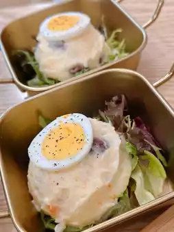 🥗Potato and Egg Salad Fresh and refreshing! 🥔 The potatoes are cooked to perfection, yet soft and chewy. 🍳 Paired with a smooth egg salad, it's a great appetizer.