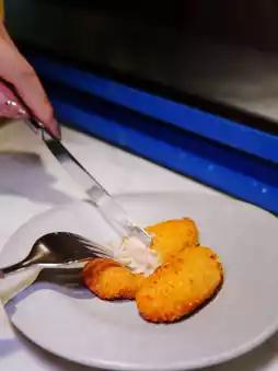 A classic Spanish snack with a crispy, light crust and a rich, Iberian ham béchamel filling. The savory, savory flavor of the ham bursts upon the bite. 🔥