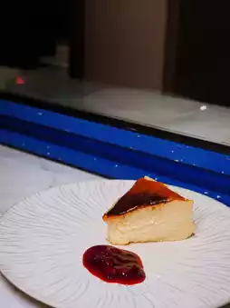 A deep, charred crust and a moist, runny center. The texture is rich yet light, with a subtle caramelized aroma.