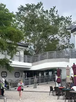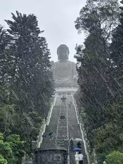 When talking about Hong Kong, many people immediately think of visiting temples to pray for blessings. Hong Kong is renowned for its temples, and one of the must-visit places is Ngong Ping. Located atop a high mountain, you can reach it either by bus or cable car. Personally, I took the cable car, which took about 25 minutes. It saved time and offered stunning views along the way! If you're visiting Hong Kong, don't miss this spot. It's also conveniently close to the airport, making it a great place to stop by before heading back to Thailand.