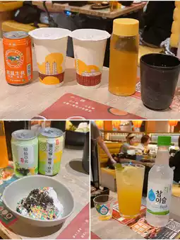 Drinks 🥤 Set includes 💰 Beer 🍺 Soju 🍾 Soda 🫧 Papaya milk 🥛 Herbal tea 🫘 Various teas 🍵 Red Fire Iced Tea ❤️🔥 Winter melon tea, and more 🫖
