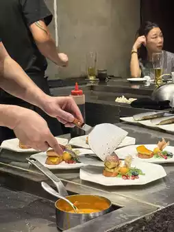 Today, I celebrated my birthday with a friend and finally booked a spot at this popular teppanyaki place in Causeway Bay. The food is high-quality and reasonably priced. For just over 700 yuan, you can enjoy 11 dishes, including foie gras, wagyu beef, and various seafood dishes. The chef cooks right in front of you, allowing you to enjoy the food while admiring his masterful cooking skills. All ingredients are freshly cooked.