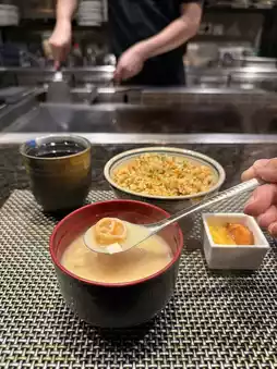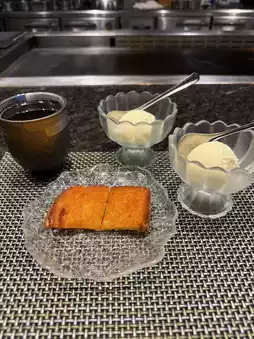 Finally, there's fried rice and miso soup, and dessert is caramel toast with ice cream.