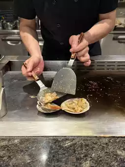The teppanyaki shrimp were made with shrimp paste. The shrimp is tender and satisfying.