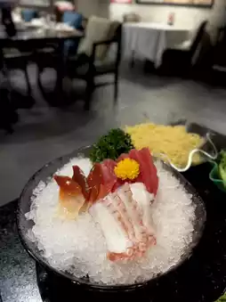 First, the Japanese sashimi platter included surf clams, tuna, and eightband butterflyfish, all of which tasted great!