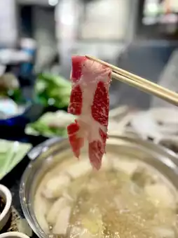 The premium marbled beef had evenly distributed fat, and just a few seconds in the broth made it ready to eat. It was rich in flavor. The clear tofu soup base was sweet and complemented the freshness of the seafood and beef. The tofu was silky and quite enjoyable.