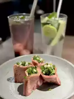 First, the Japanese Wagyu shoulder platter is a highlight. The marbling of the Wagyu is evenly distributed, and cooking it to medium rare brings out its perfect flavor. With simple seasoning, you can fully enjoy the rich taste of Wagyu.