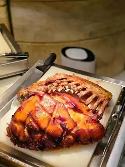 🍖 Grilled honey ham: the surface is covered with cloves, honey crispy skin + juicy meat, with mint sauce super refreshing ~