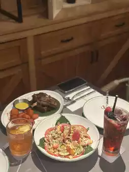 The restaurant has two floors. The upper floor features a Western-style restaurant with spacious and comfortable seating, perfect for gatherings. The downstairs is a bar with a live band, a bar counter, and outdoor seating.