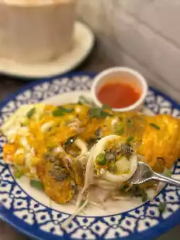 This Thai oyster cake is completely different from the traditional Chinese kind. It is a surprise! The outer layer is not crispy, but fried golden, the inside is soft and chewy, with a Q bouncy taste 🥰 The filling is full of oysters, fresh shrimp and squid, very rich and sincere! The freshness of the oysters is prominent, plus the onion and spices enhance the flavor, it tastes very fresh and sweet😍 Compared with the Chinese oyster cake, this is refreshing and not hot, and has a strong egg flavor. Friends who like seafood should not miss it!