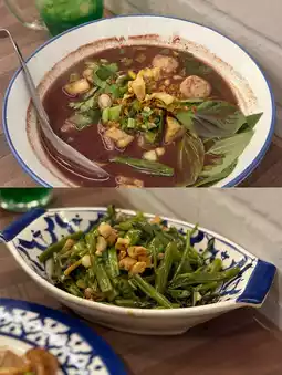 Thai boat noodles are served, the aroma of the soup comes to your nose😍 The soup is rich and slightly lemongrass flavor, sour and fresh, is the authentic taste of the streets of Bangkok😆 The wagyu beef slices are thin and tender, the oil distribution is just right, absorbing the essence of the soup👍🏻 The meatballs are refreshing and bouncy;