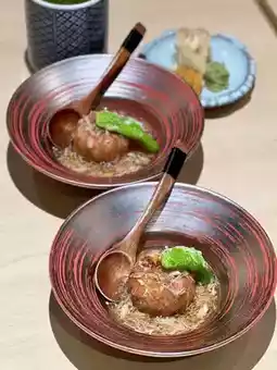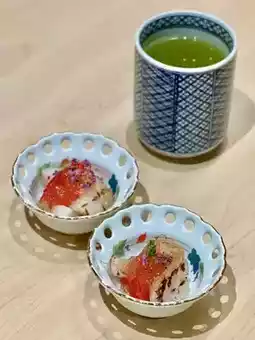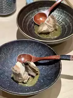 ▪️Simmered Abalone: The abalone is tender and delicious paired with liver pate and vinegar rice.