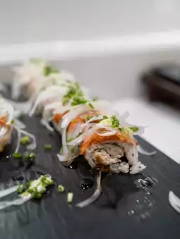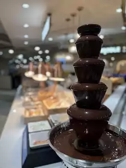 The restaurant's interior is spacious and brightly lit, with food divided into different sections: hot dishes, sushi & rolls, sashimi, fried items, baked goods, ice cream & desserts, fruits, salad bar, and more. The most eye-catching area is the Chef’s Zone, where you can find freshly made dishes like three-color pancakes, LA ribs, and puff pastry soup, all filling the air with irresistible aromas.