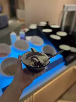 If you try to sample everything, you might need a halftime break 🤡. I recommend saving some room because the dessert section is another "battlefield"—soft serve, DIY shaved ice, waffles, gelato, and an entire fridge of Korean ice pops 🤤🤤🤤.