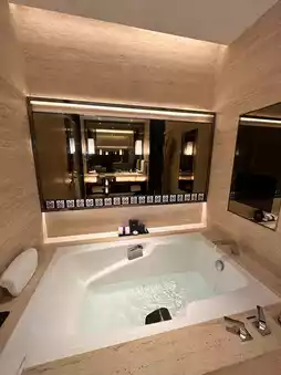 I visited the skyscraper, floating above the clouds, located on the 102nd to 118th floors of the International Commerce Centre in Kowloon. ☁️ Even though Hong Kong's cityscape is already quite tall, this hotel was truly impressive. 🏙️