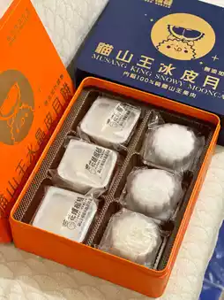The royal blue mooncake tin 💙 also contains six individually vacuum-sealed 60g mooncakes 🥮. The thin, translucent ice skin is smoky and chewy, and the mochi-like crust is cool and refreshing, enveloping the D197 Mao Shan fruit puree for a rich, layered experience.