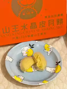 The bright orange mooncake tin 🧡 contains six individually vacuum-sealed 60g mooncakes 🥮. The translucent crystal skin is soft and chewy, revealing a hint of the D197 Musang fruit puree. The filling is rich, tender, and melt-in-your-mouth. It's sweet with a unique bitterness and lingering sweetness, like durian ice cream 🍦. The low-calorie formula is suitable for those seeking a healthy weight loss diet 💪🏻