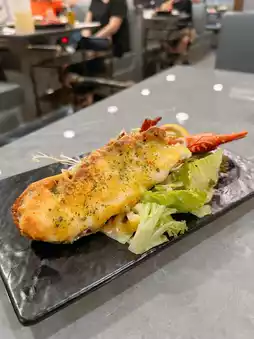Cheese Baked Boston Lobster ๐ฆ Package includes ๐ฐ fresh and sweet lobster with firm texture ๐ golden and rich cheese ๐ง served with a side salad ๐ฅ